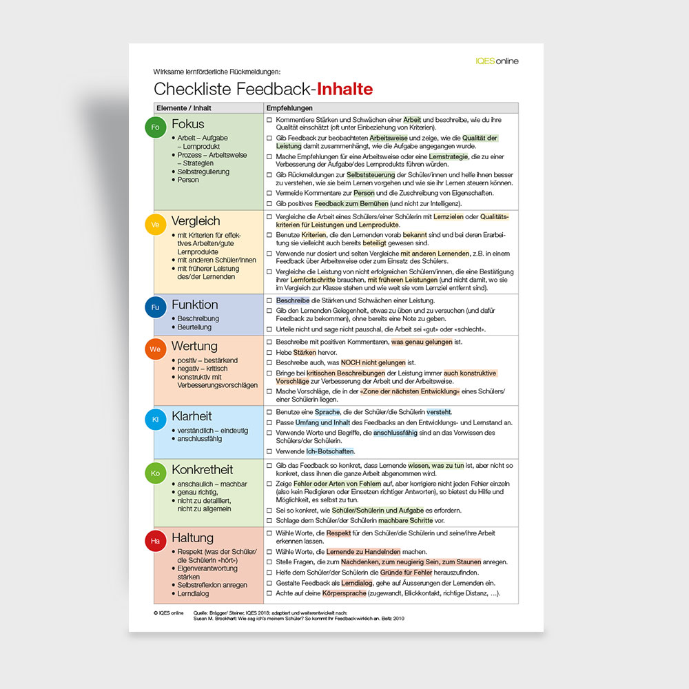 Checkliste und Kartensets zu Feedback-Strategien und -Inhalten