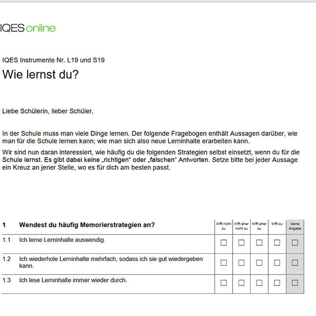 Diagnosebogen «Lernstrategien»